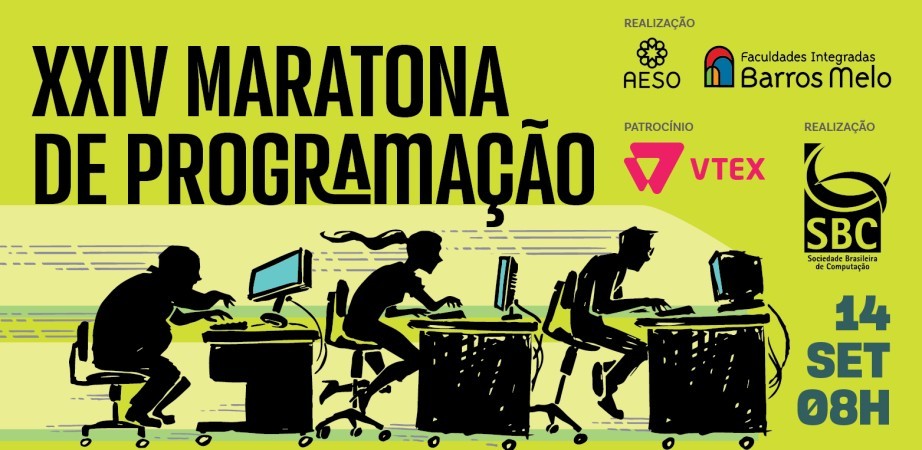 Foi dada a largada para a XXIV Maratona de Programação. O evento acontece no dia 14 de setembro, a partir das 8h, nas instalações das Faculdades Integradas Barros Melo- AESO, e visa promover a criatividade, a capacidade de trabalho em equipe, a busca de novas soluções de software e a habilidade de resolver problemas sob pressão. O encontro, que é de responsabilidade da Sociedade Brasileira de Computação, é destinado aos alunos dos cursos de graduação e pós-graduação de Computação e áreas afins, como, por exemplo, a Ciência da Computação, Engenharia de Computação, Sistemas de Informação e Matemática.