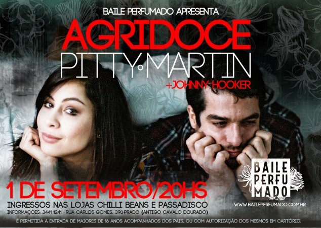A Barros Melo, em parceria com o Baile Perfumado está sorteando, através do Facebook, dois pares de ingresso para o show da banda Agridoce, projeto da cantora Pitty e do guitarrista Martin, que se apresenta na capital pernambucana neste sábado (1º). Para concorrer basta seguir quatro passos: