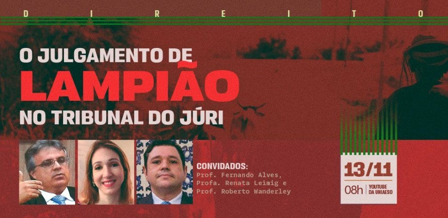 Alunos e juristas convidados se basearão no fato histórico, que aconteceu no nordeste brasileiro, para fazer um julgamento dos atos cometidos por Lampião e seu bando. O julgamento de Lampião no Tribunal do Júri está marcado para dia 13 de novembro, a partir das 8h, no canal do Youtube da UNIAESO.