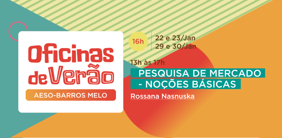 Como elaborar uma Pesquisa de Mercado em nove passos. Esta é a ementa da Oficina de Verão: Pesquisa de Mercado – Noções básicas, promovida pelas Faculdades Integradas Barros Melo (AESO), em janeiro. As aulas acontecem dias 22, 23, 29 e 30, das 13h às 17h, na sede da FIBAM.