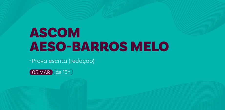 A redação (cujo tema será divulgado no momento da avaliação) será aplicada dia 05 de março, às 15h, na AESO-Barros Melo. Os candidatos deverão se apresentar na recepção do terceiro andar, próxima à sala 3F (Comunicação e Eventos) para seguir para a seleção.